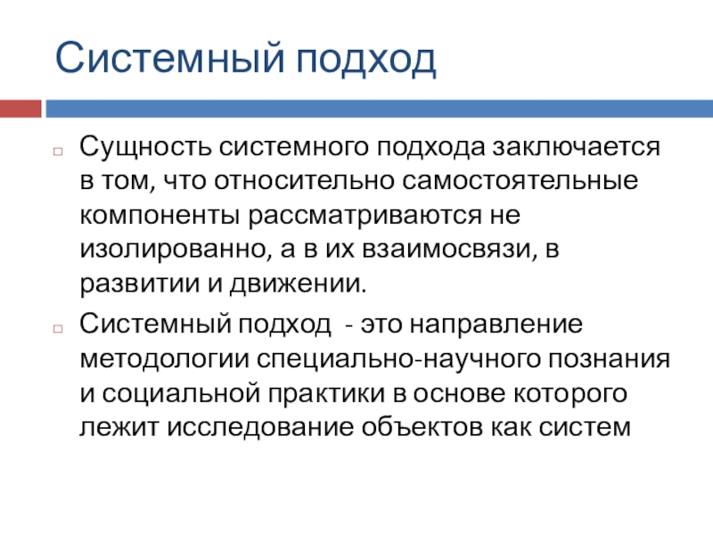 Сущность системного подхода заключается в том, что относительно самостоятельные компоненты