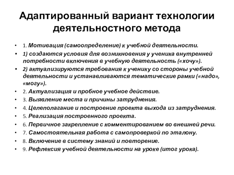 Слайд 23Адаптированный вариант технологии деятельностного метода