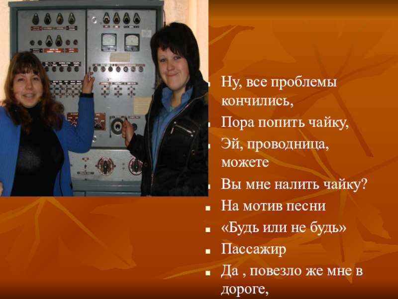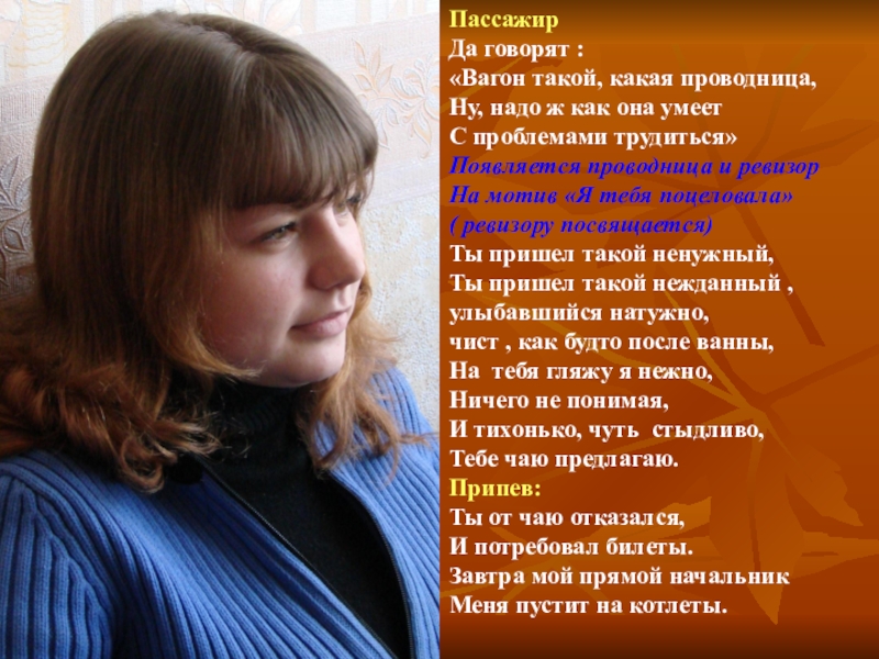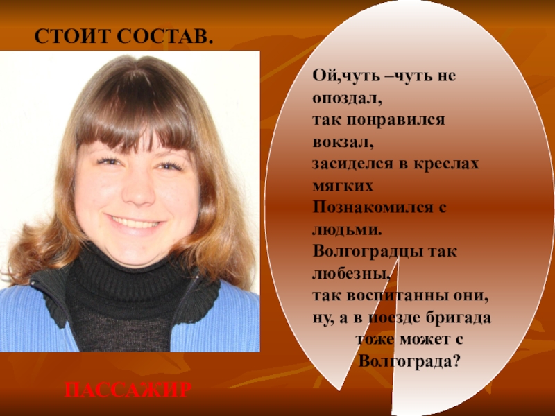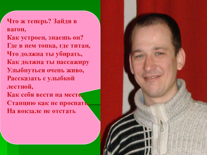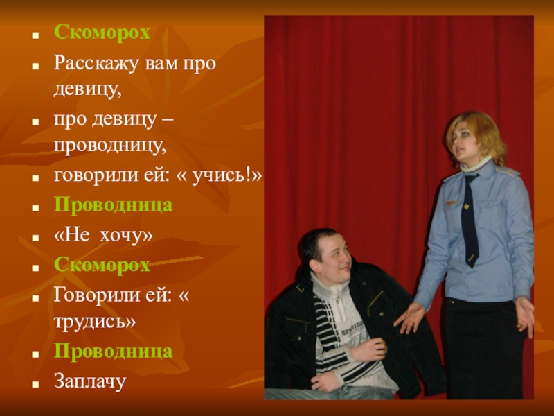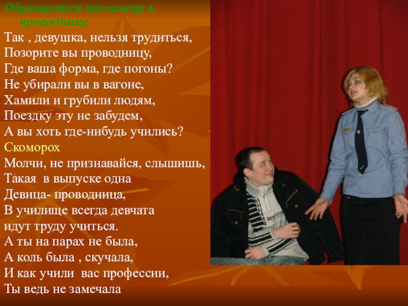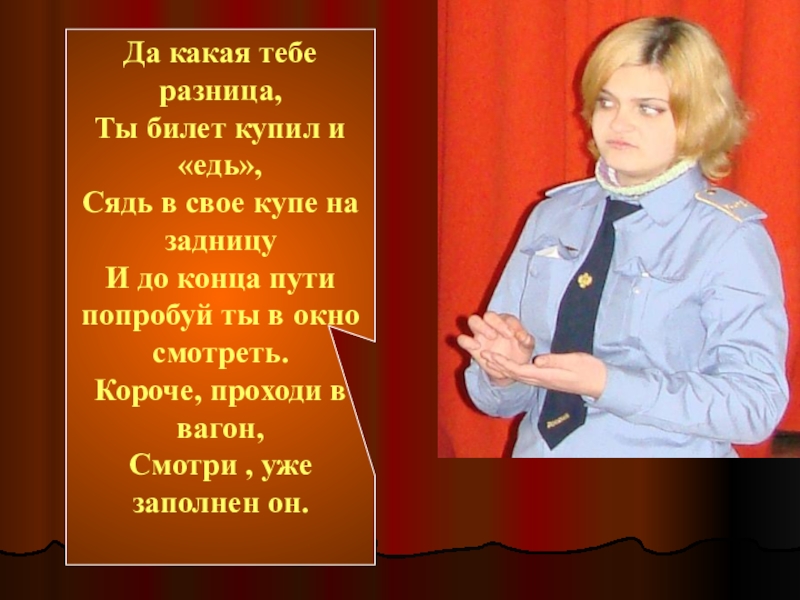 Слайд 19Обращается пассажир к проводнице