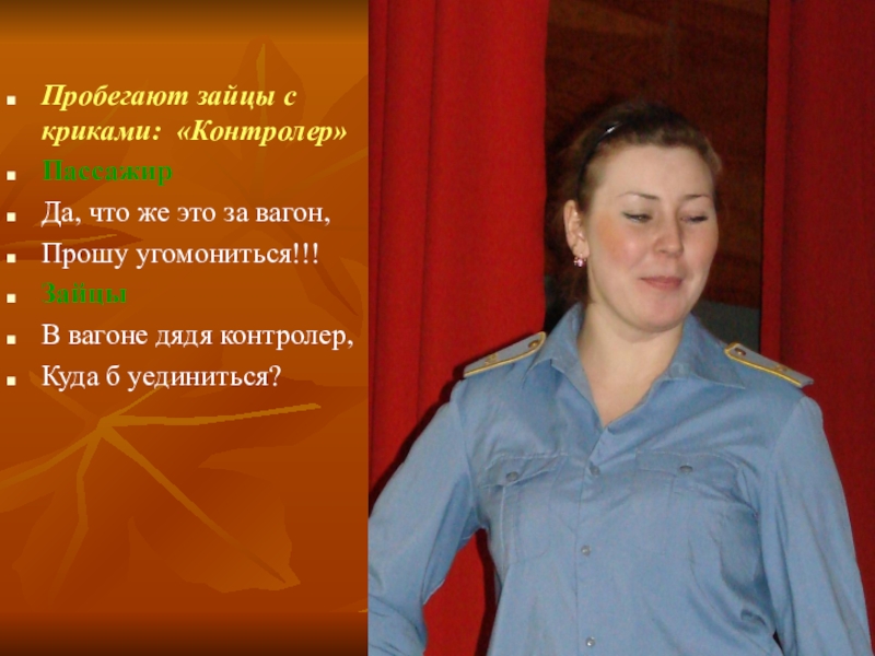 Слайд 15Пробегают зайцы с криками: «Контролер»