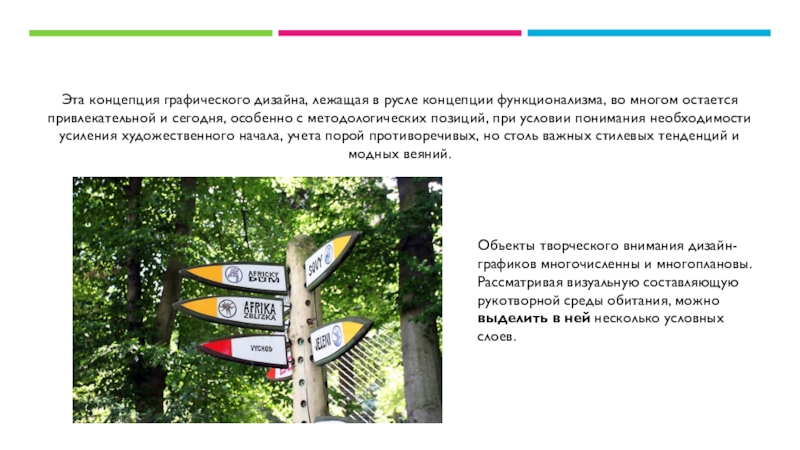 Слайд 4Эта концепция графического дизайна, лежащая в русле концепции функционализма, во многом