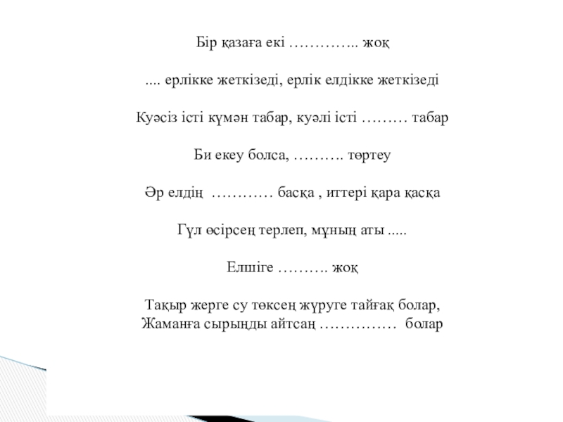 Слайд 6Бір қазаға екі ………….. жоқ (жаза, наказание)