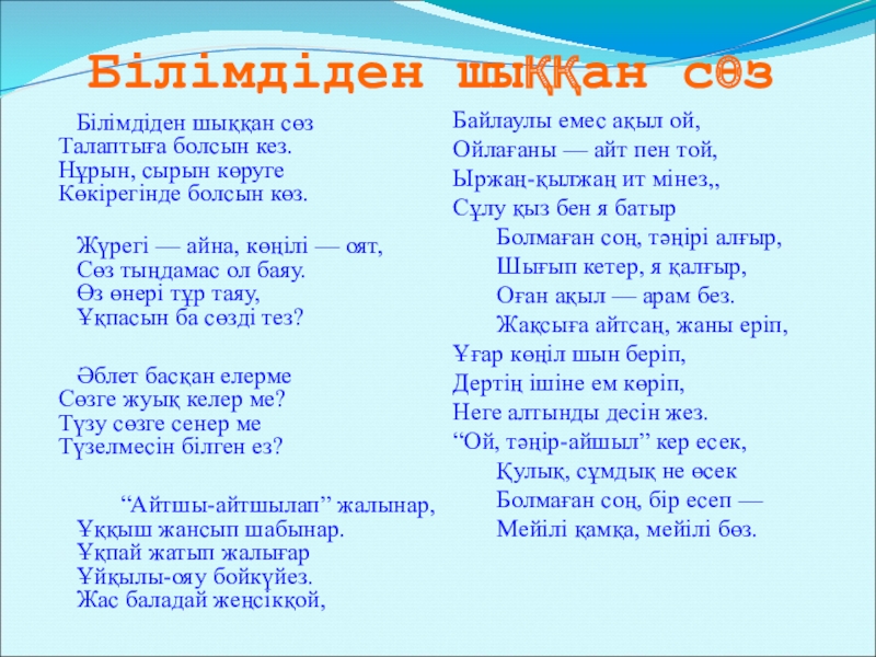 Қиналмай, қызыл тілім, кел тілді ал, қой!