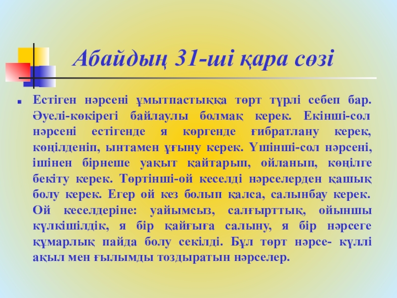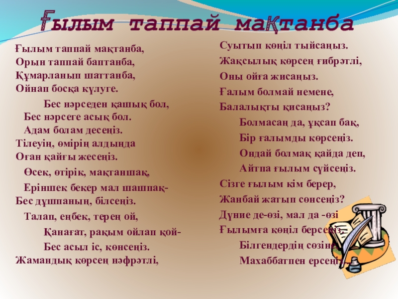 Балғын шақтарыңда оқыған кітап, алған білім тасқа басылғандай мәңгі-бақи естеріңде қалмақ дегенді меңзейді.