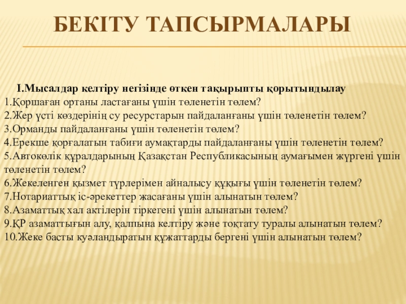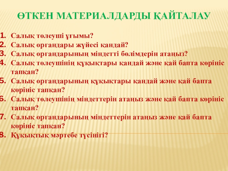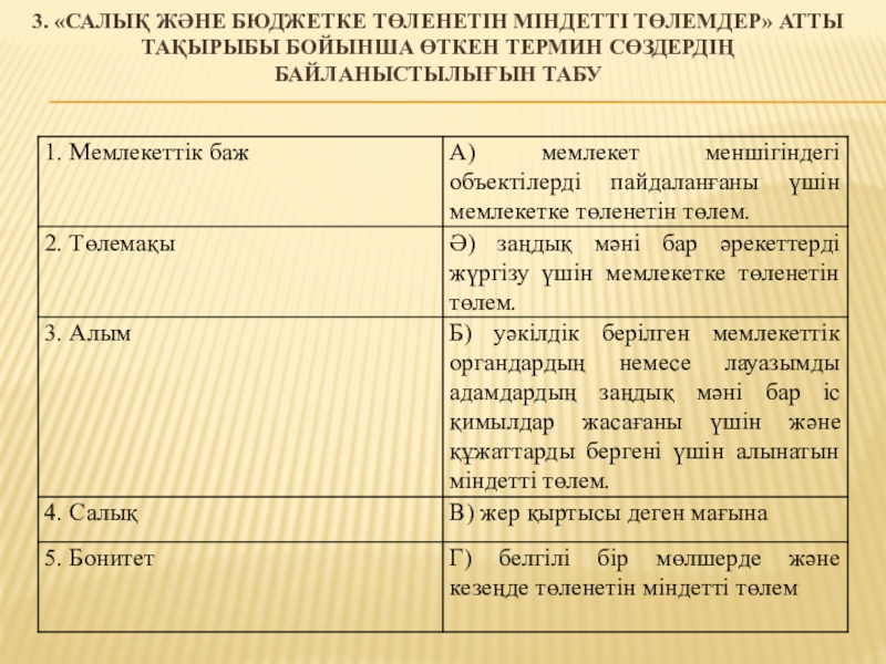 Слайд 203. «Салық және бюджетке төленетін міндетті төлемдер» атты тақырыбы бойынша өткен