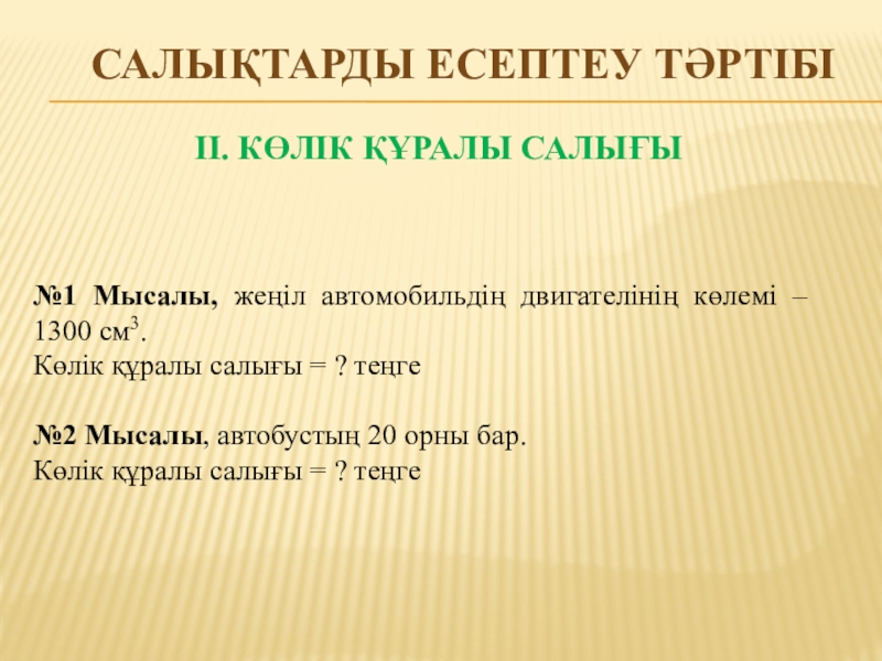 №1 Мысалы, жеңіл автомобильдің двигателінің көлемі – 1300
