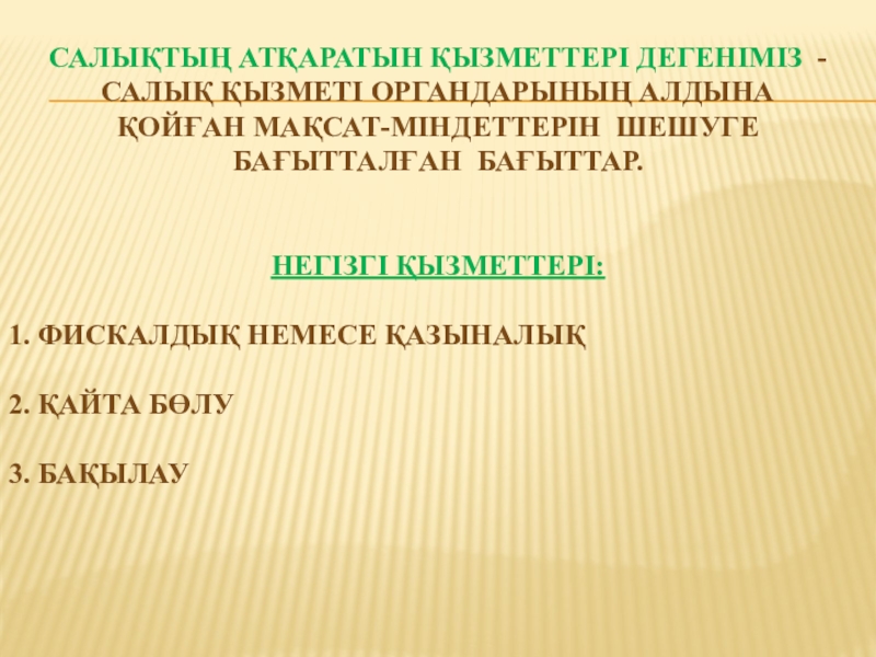 Салықтың атқаратын қызметтері дегеніміз - салық қызметі органдарының алдына