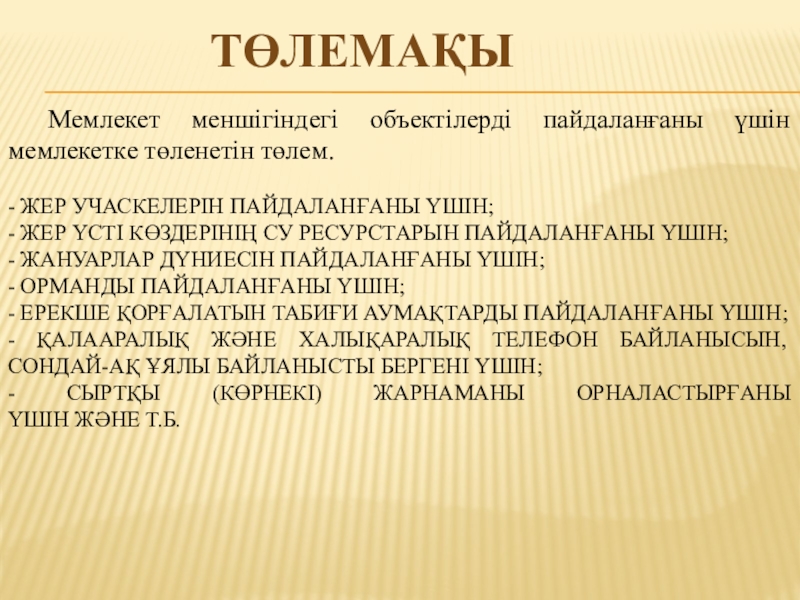 Мемлекет меншігіндегі объектілерді пайдаланғаны үшін мемлекетке төленетін төлем.