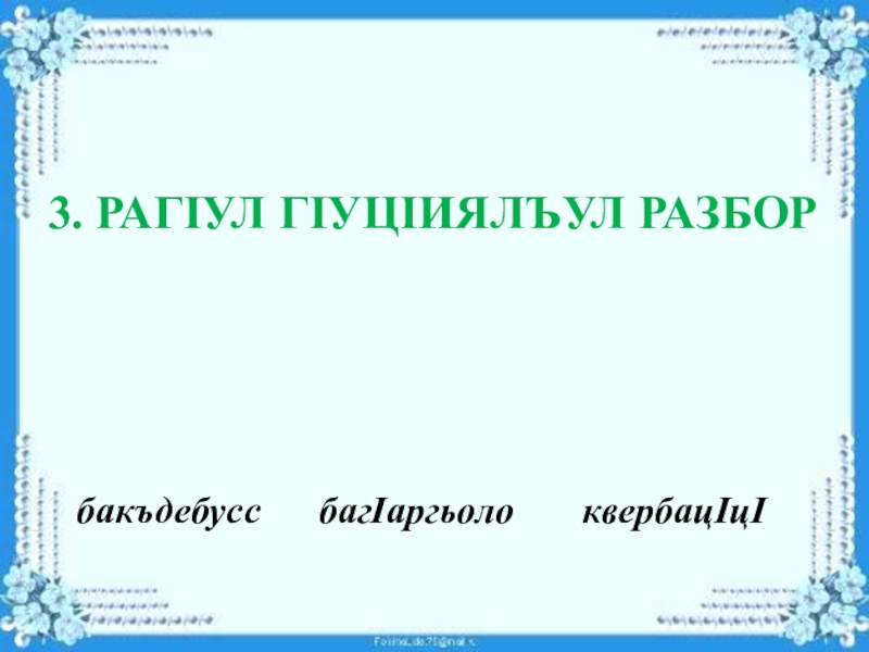 МАГIАРУЛ МАЦIАЛДА ЦIИЯЛ РАГIАБИ ЛЪУГЬИНАЛЪУЛ КЪАГIИДАБАЗУЛ БАЯН ЩУЛА ГЬАБИЛА. ЦЕРЕСЕЛ ДАРСАЗДА МАЛЪАРАБ ТАКРАР ГЬАБИ.