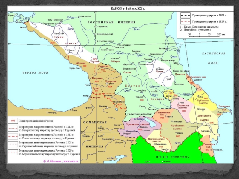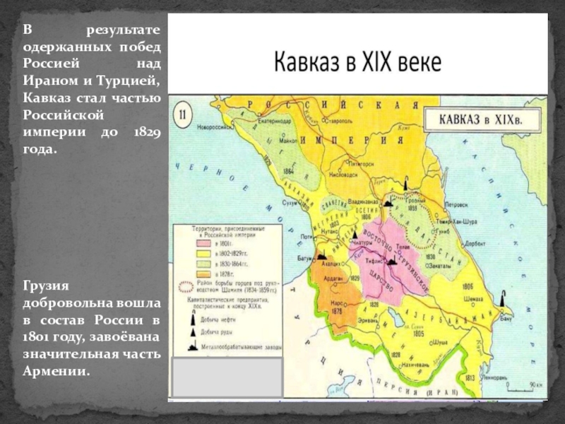 Слайд 2В результате одержанных побед Россией над Ираном и Турцией, Кавказ стал