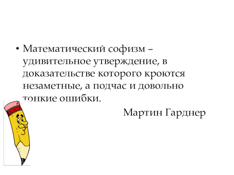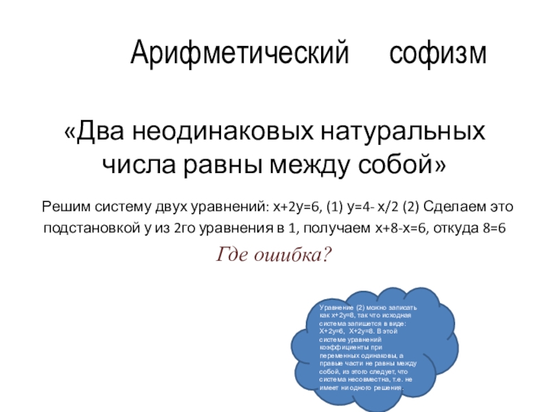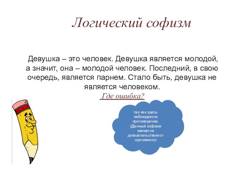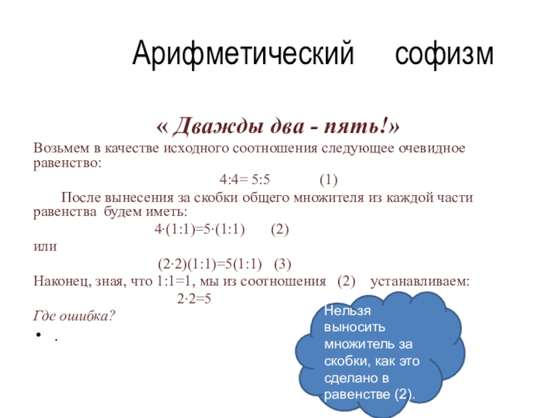 так как здесь наблюдается противоречие. (Данный софизм является доказательством от противного)