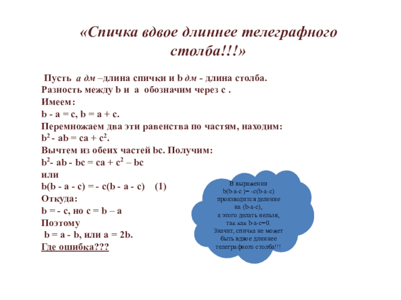 Значит, спичка не может быть вдвое длиннее телеграфного столба!!!
