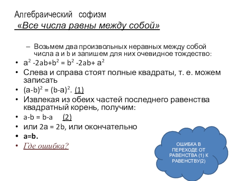 ОШИБКА В ПЕРЕХОДЕ ОТ РАВЕНСТВА (1) К РАВЕНСТВУ(2)