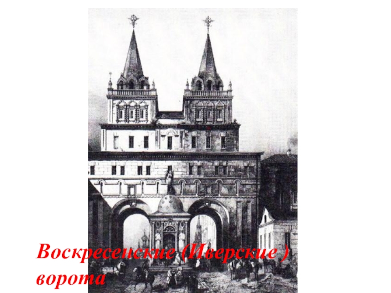 Копия «Вратницы Иверской» Афонского монастыря была принесена в Москву в 1648 году и торжественно встречена у Воскресенских ворот, где позже для неё и была построена часовня. У часовни останавливались и молились, перед входом в Кремль, все российские цари и императоры. Да и всяк – отправлялся ли в дорогу, приезжал ли в первопрестольную, приступал ли к важному делу – считал необходимым благословиться у чудотворной иконы... Часовня разобрана в 1929 году, а икона перенесена в церковь Воскресения в Сокольниках