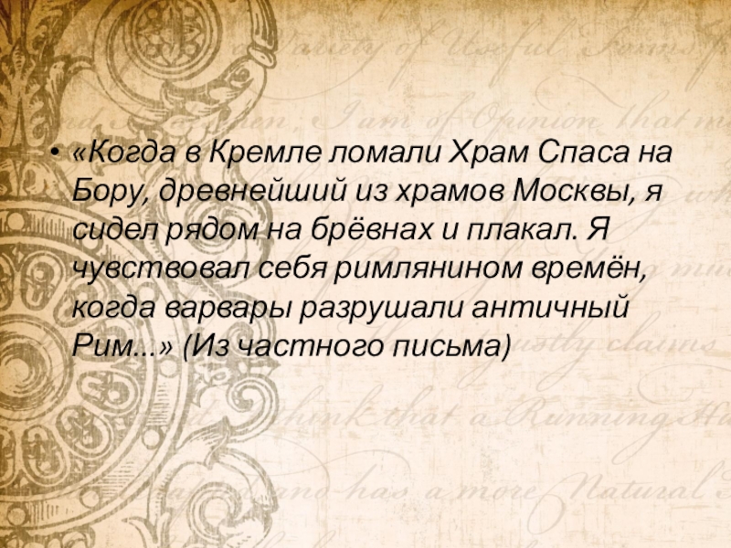 Слайд 2«Когда в Кремле ломали Храм Спаса на Бору, древнейший из храмов