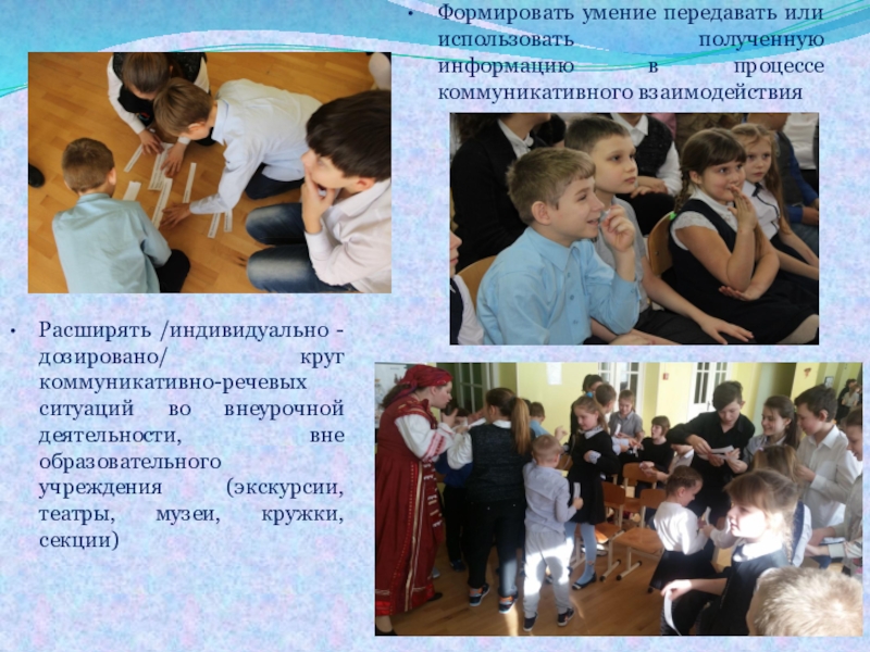 Формировать умение передавать или использовать полученную информацию в процессе коммуникативного взаимодействия