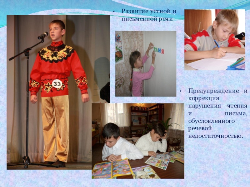 Слайд 10Предупреждение и коррекция нарушения чтения и письма, обусловленного речевой недостаточностью.