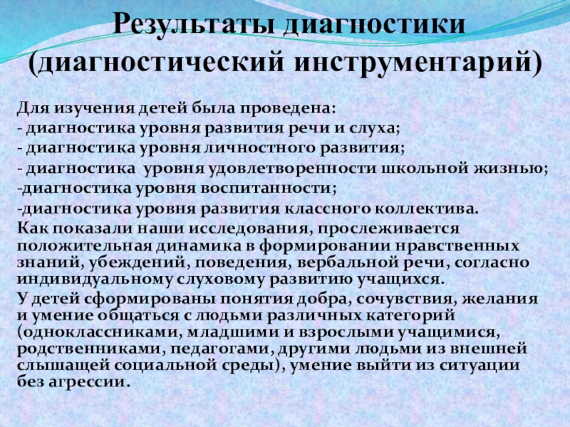 Слайд 25 Результаты диагностики (диагностический инструментарий)