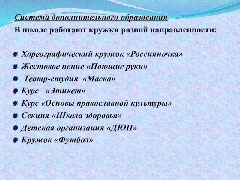образовательного учреждения (экскурсии, театры, музеи, кружки, секции)