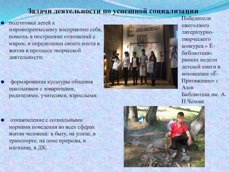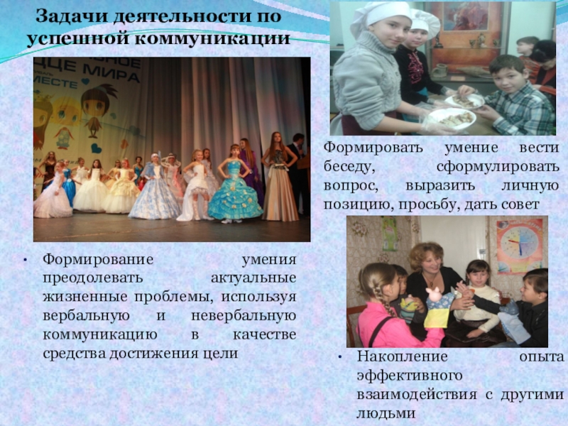 Оказание помощи в социализации, повышение уровня культуры общения, развитие навыков общения, повышение самооценки