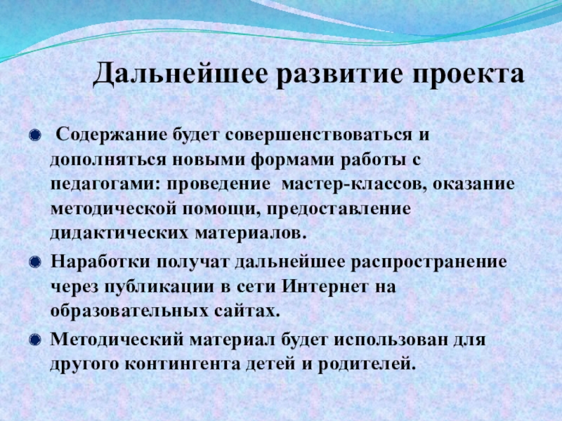 Наработки получат дальнейшее распространение через публикации в сети Интернет на образовательных сайтах.