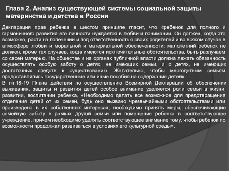 Слайд 6Глава 2. Анализ существующей системы социальной защиты материнства и детства в