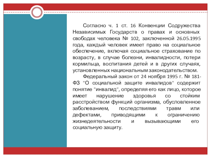 По заключению лечебного учреждения инвалидам предоставляются путевки на санаторно-курортное лечение. Неработающим инвалидам путевка предоставляется бесплатно, а работающему инвалиду — с 50-процентной скидкой. Лицо, сопровождающее инвалида I группы и детей-инвалидов, обеспечивается бесплатной путевкой и проездом в оба конца.