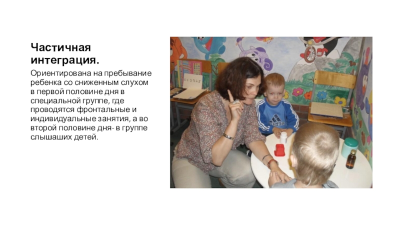 Цель посещения массового детского сада автор видит в пребывании глухого ребенка в нормальной среде, общении с говорящими детьми.