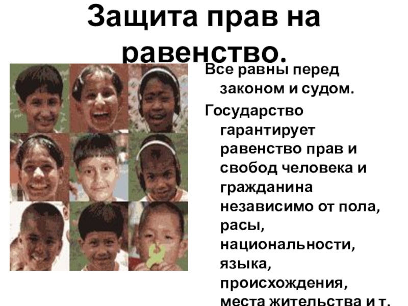 прав и свобод человека и гражданина независимо от пола, расы, национальности, языка, происхождения, места жительства и т.д.
