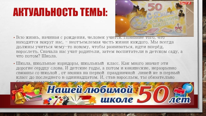 Наша школа в 2018 году отмечает 50-летний юбилей, мы