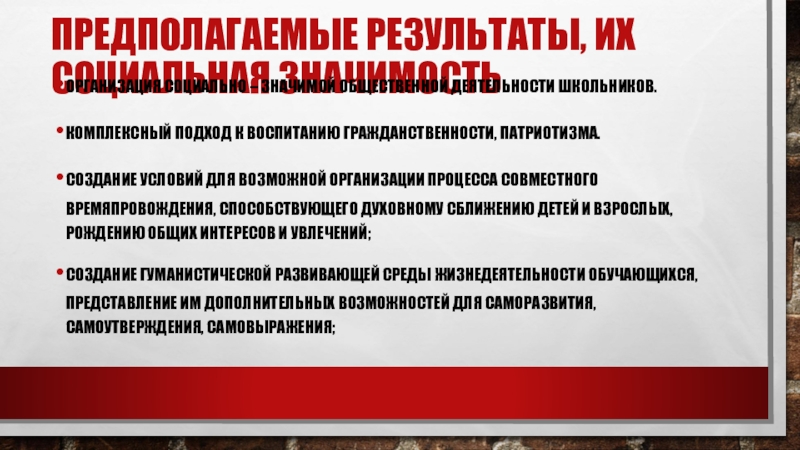 Слайд 24Предполагаемые результаты, их социальная значимость