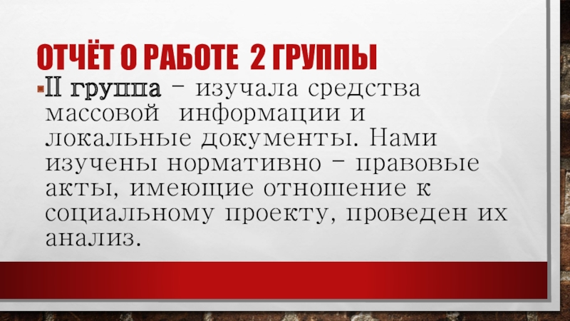 и локальные документы. Нами изучены нормативно - правовые акты, имеющие отношение к социальному проекту, проведен их анализ.