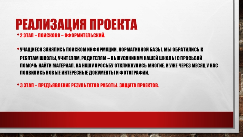 нормативной базы. Мы обратились к ребятам школы, учителям, родителям – выпускникам нашей школы с просьбой помочь найти материал. На нашу просьбу откликнулись многие. И уже через месяц у нас появились новые интересные документы и фотографии.