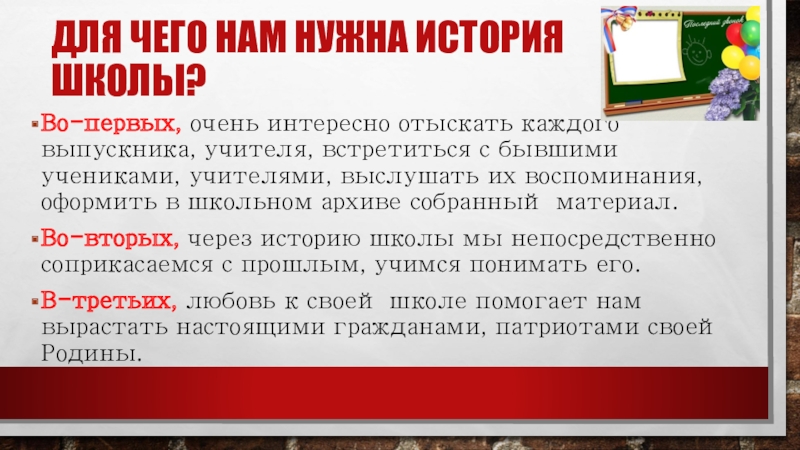 Во-вторых, через историю школы мы непосредственно соприкасаемся с прошлым, учимся понимать его.