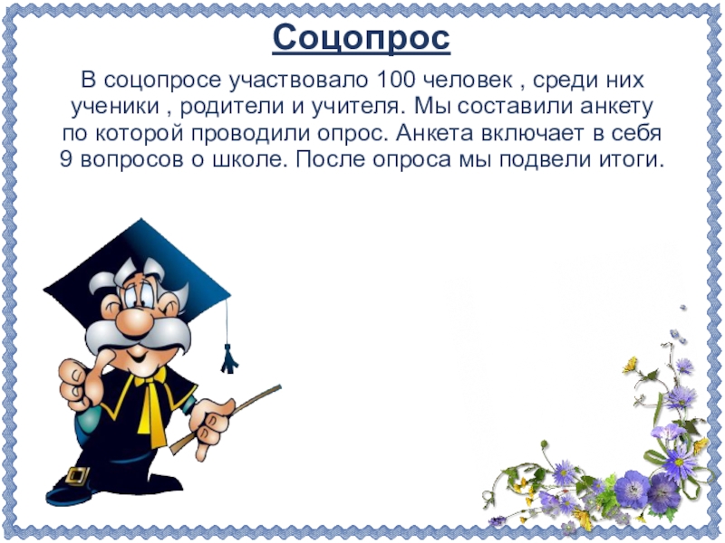 Это сайт презентаций, где можно хранить и обмениваться своими презентациями, докладами, проектами, шаблонами в формате PowerPoint с другими пользователями. Мы помогаем школьникам, студентам, учителям, преподавателям хранить и обмениваться учебными материалами.