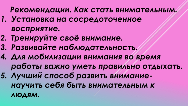 Слайд 16Рекомендации. Как стать внимательным.