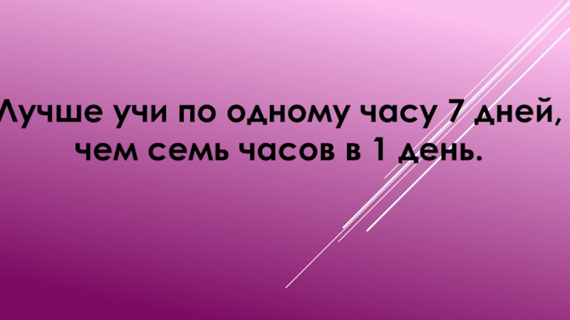 Слайд 22Лучше учи по одному часу 7 дней,