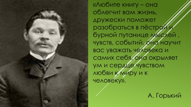 Слайд 30«Любите книгу – она облегчит вам жизнь, дружески поможет разобраться в