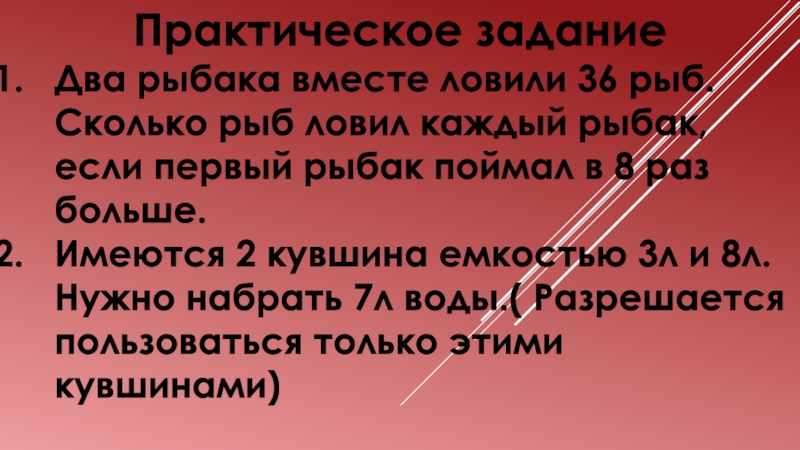 рыбак, если первый рыбак поймал в 8 раз больше.