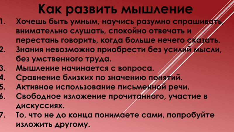 Слайд 27Как развить мышление