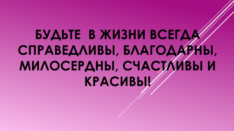 БУДЬТЕ В ЖИЗНИ ВСЕГДА СПРАВЕДЛИВЫ, БЛАГОДАРНЫ, МИЛОСЕРДНЫ, СЧАСТЛИВЫ И КРАСИВЫ!