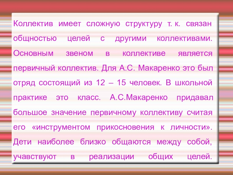Слайд 1Понятие «коллектив» было введено в обиход в отечественную педагогическую теорию и