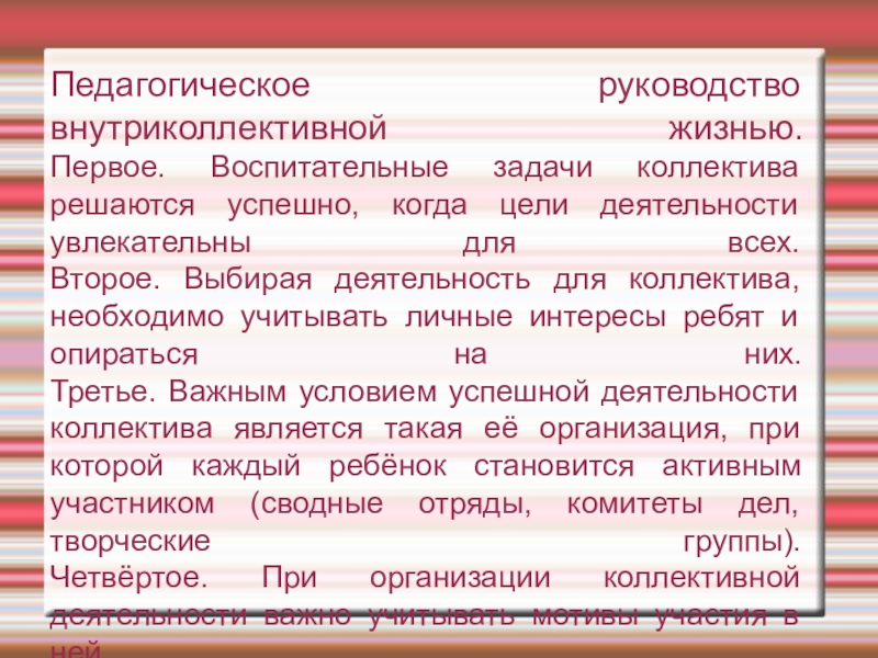 Слайд 7Педагогическое руководство внутриколлективной жизнью.