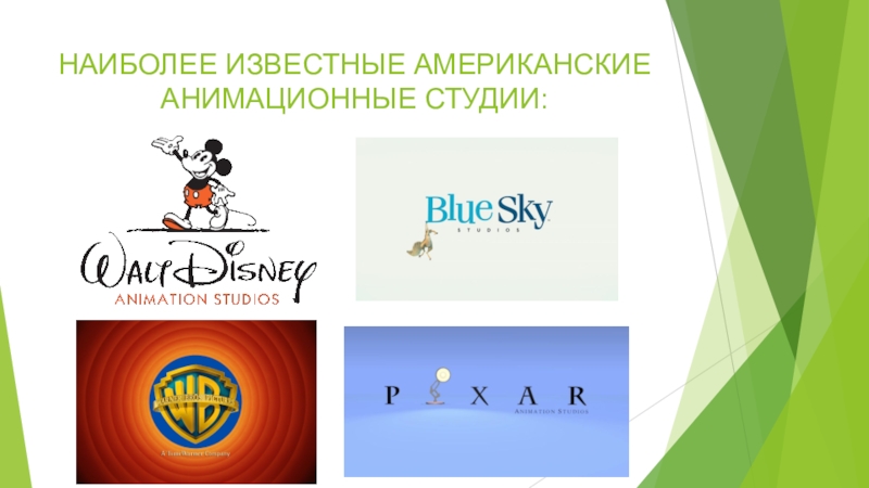 Слайд 3НАИБОЛЕЕ ИЗВЕСТНЫЕ АМЕРИКАНСКИЕ АНИМАЦИОННЫЕ СТУДИИ: