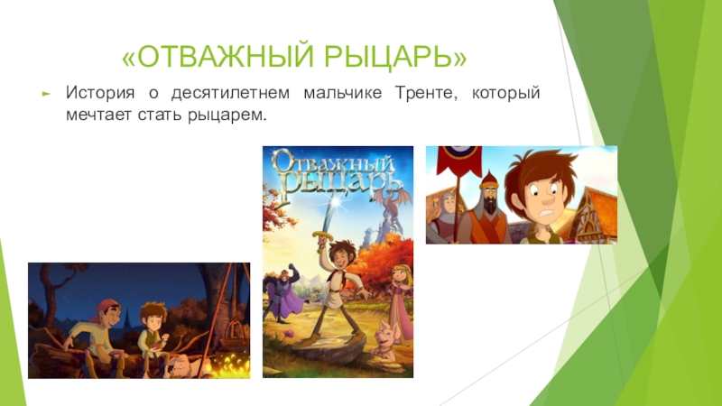 «ОТВАЖНЫЙ РЫЦАРЬ»История о десятилетнем мальчике Тренте, который мечтает стать рыцарем.