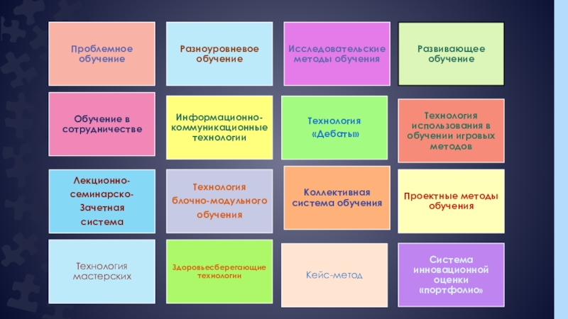 -технология компенсирующего обучения (используется для педагогической коррекции, поддержки. выравнивания, компенсации).