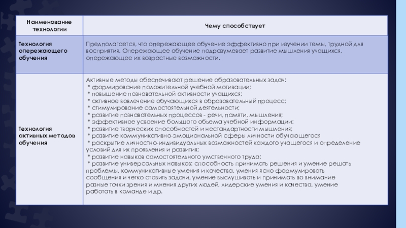 -технология продвинутого образования (углубленное изучение предметов и типична для гимназического, лицейского, специального образования);