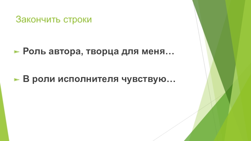 Закончить строкиРоль автора, творца для меня…В роли исполнителя чувствую…