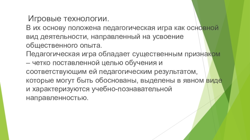 Игровые технологии. В их основу положена педагогическая игра как основной вид деятельности, направленный на усвоение общественного