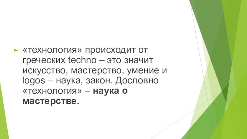 «технология» происходит от греческих techno – это значит искусство, мастерство, умение и logos – наука, закон. Дословно «технология» – наука о мастерстве.